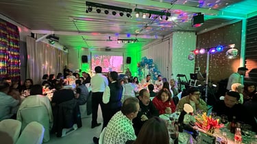 Salón 3: Para celebraciones más grandes, este salón ofrece un amplio espacio con capacidad para 150 personas.